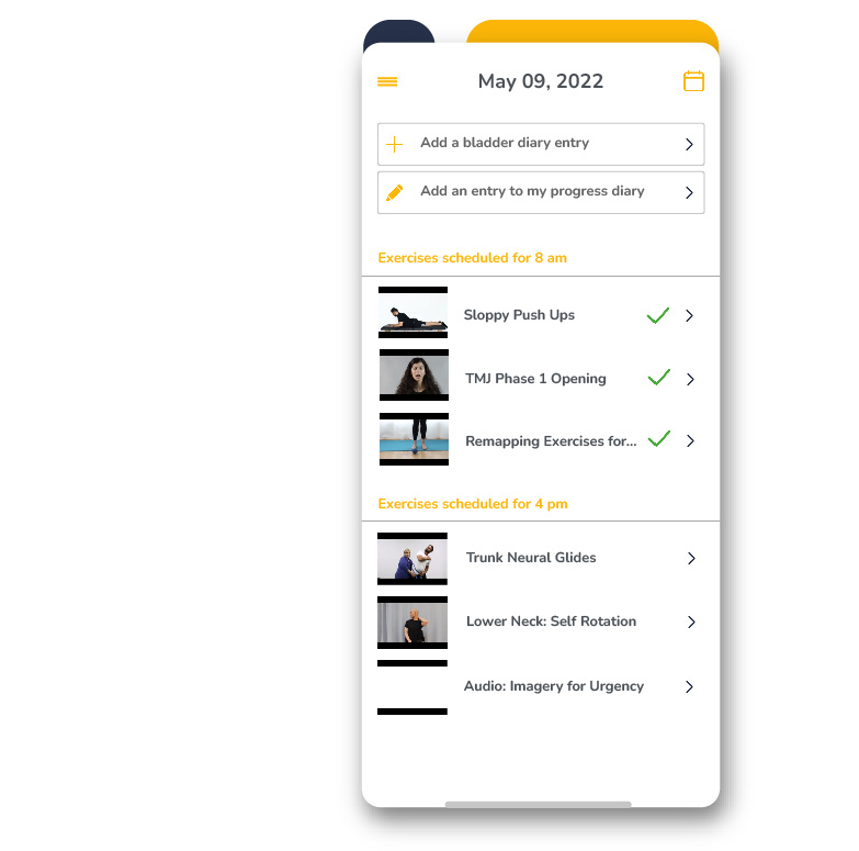 Embodia offers a large library of questionnaires and outcome measures that include automated scoring. You can also build your own questionnaires including diaries for self-reported tracking (such as sleep or stress diaries). For the pelvic health therapists, we offer digital bladder and fibre diaries that can be completed on any device (patients will thank you - it’s much easier to bring a phone to the bathroom than a piece of paper!)